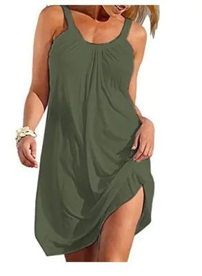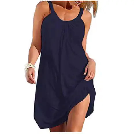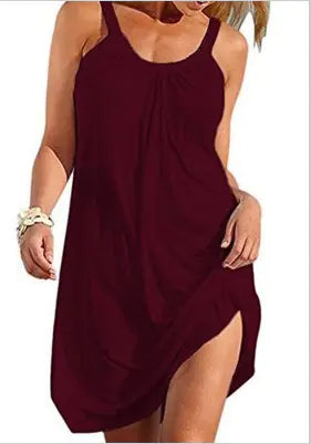 Step into style and comfort with our Pure Color Sexy Casual Spaghetti Strap Beach Dress. Perfect for those sunny days by the shore or casual outings, this dress is designed to make you feel as fantastic as you look.