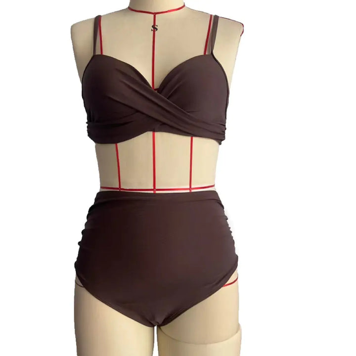 Dive into summer with our stylish and sexy bikini set, designed to elevate your beach or poolside experience! This exquisite two-piece swimsuit features a high-waisted design that not only flatters but also provides excellent tummy coverage, allowing you to feel confident and comfortable while soaking up the sun.