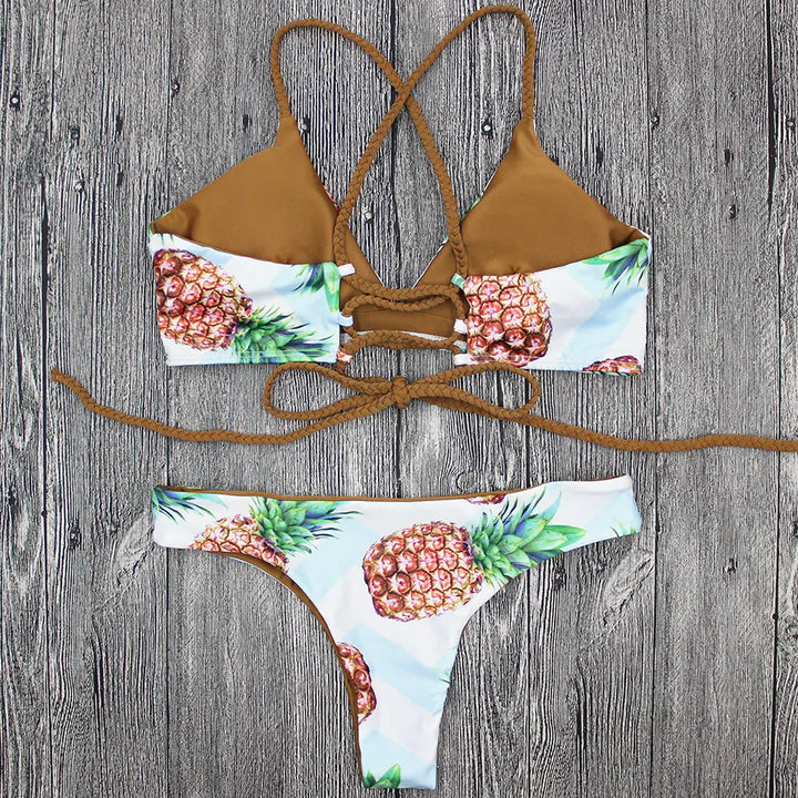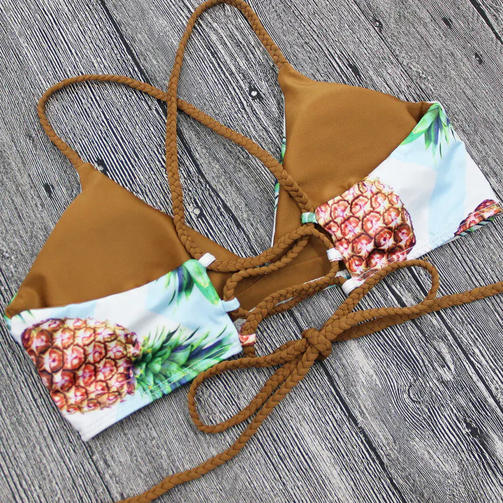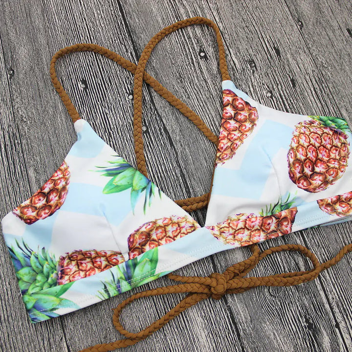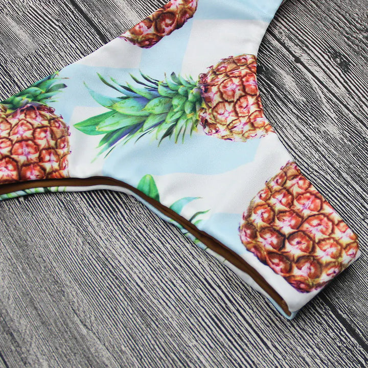 The spaghetti straps add a chic touch, allowing you to easily adjust the fit to your preference. The lovely pineapple print pattern gives you a fun and tropical vibe, perfect for beach parties or lounging by the pool.