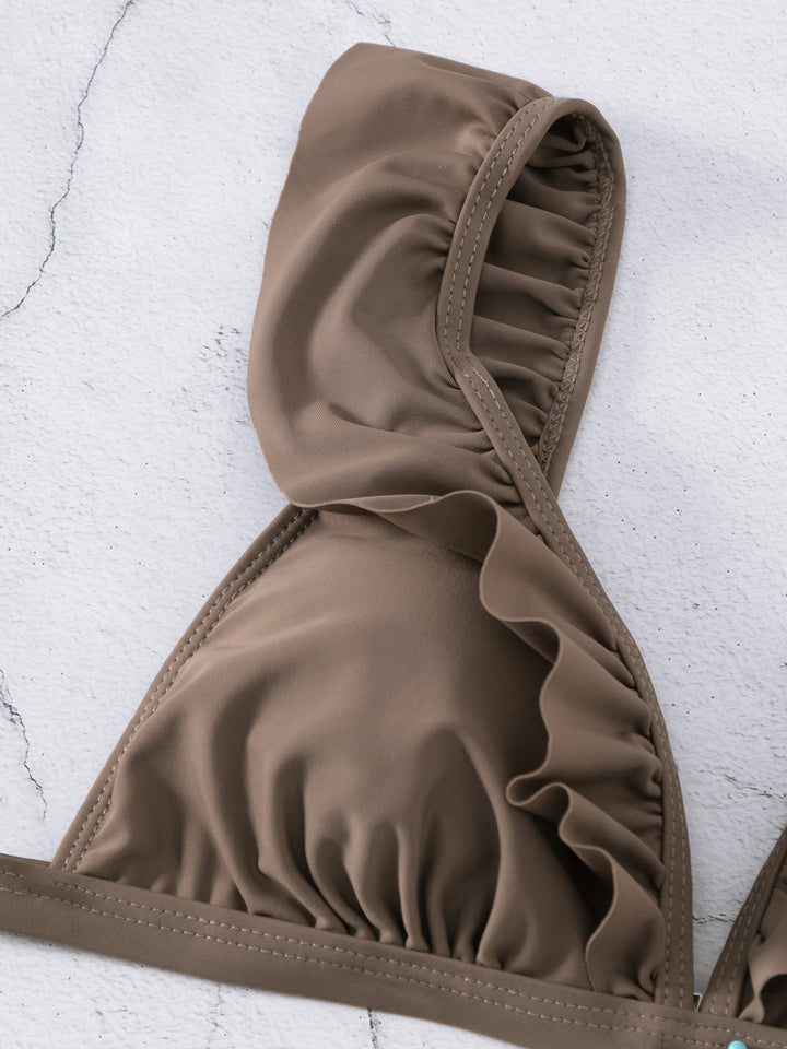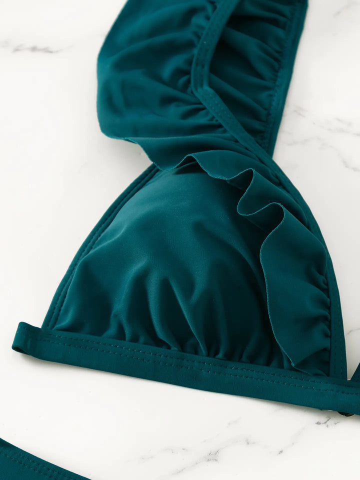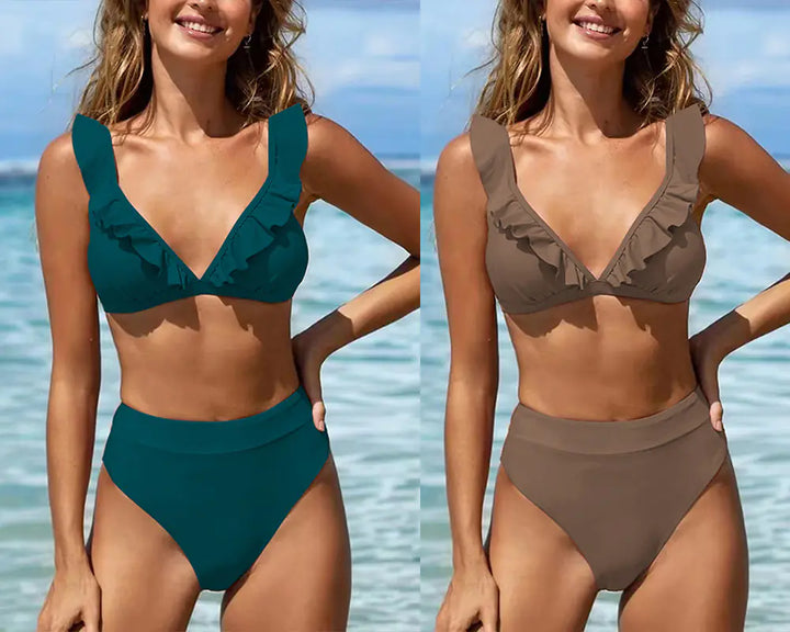 Crafted with your comfort in mind, this bikini set is available in two eye-catching colors: Camel and Peacock Green. Choose from four different sizes (S, M, L, XL) to find your perfect fit and enjoy a flattering silhouette that enhances your natural curves.