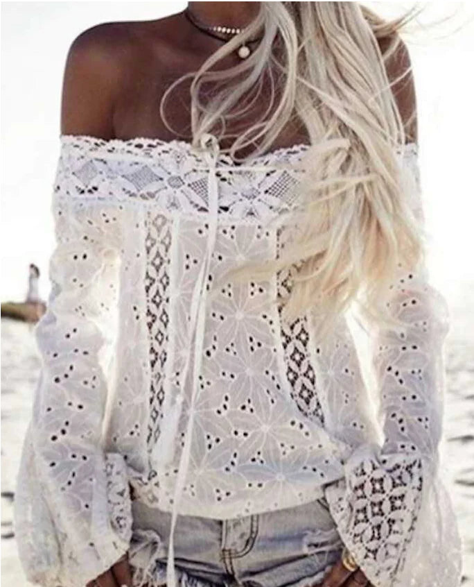Don't miss out on this essential summer piece—add the Off-Shoulder Fringed Lace Panel Top to your wardrobe today and step out in style!