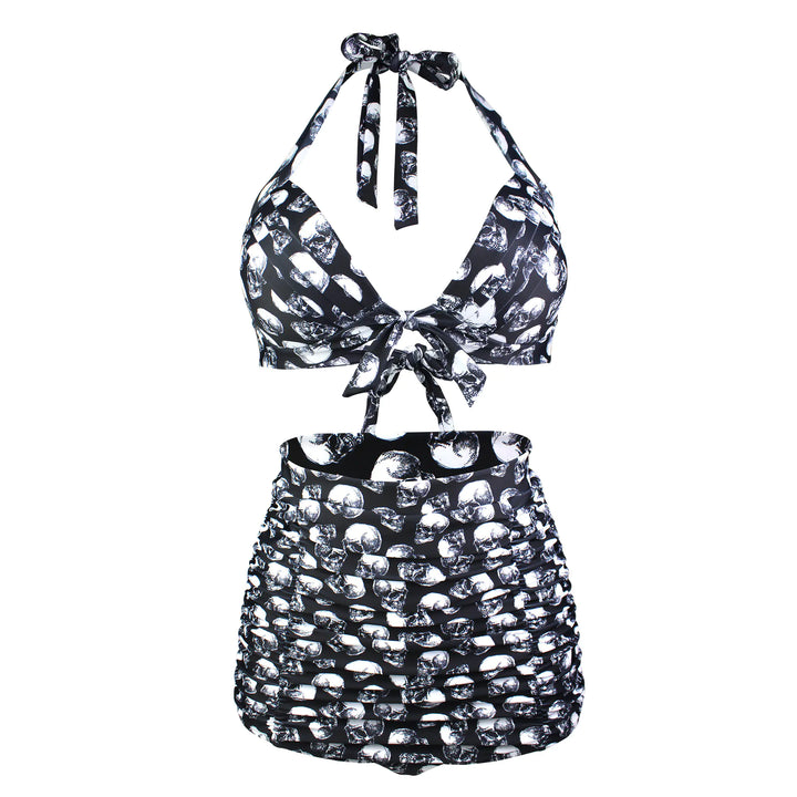 Unleash your summer spirit with our stunning two-piece skull print bikini set. Designed for the modern woman, this high-waisted bikini offers both style and comfort, making it a perfect choice for swimming, beach outings, or poolside lounging.